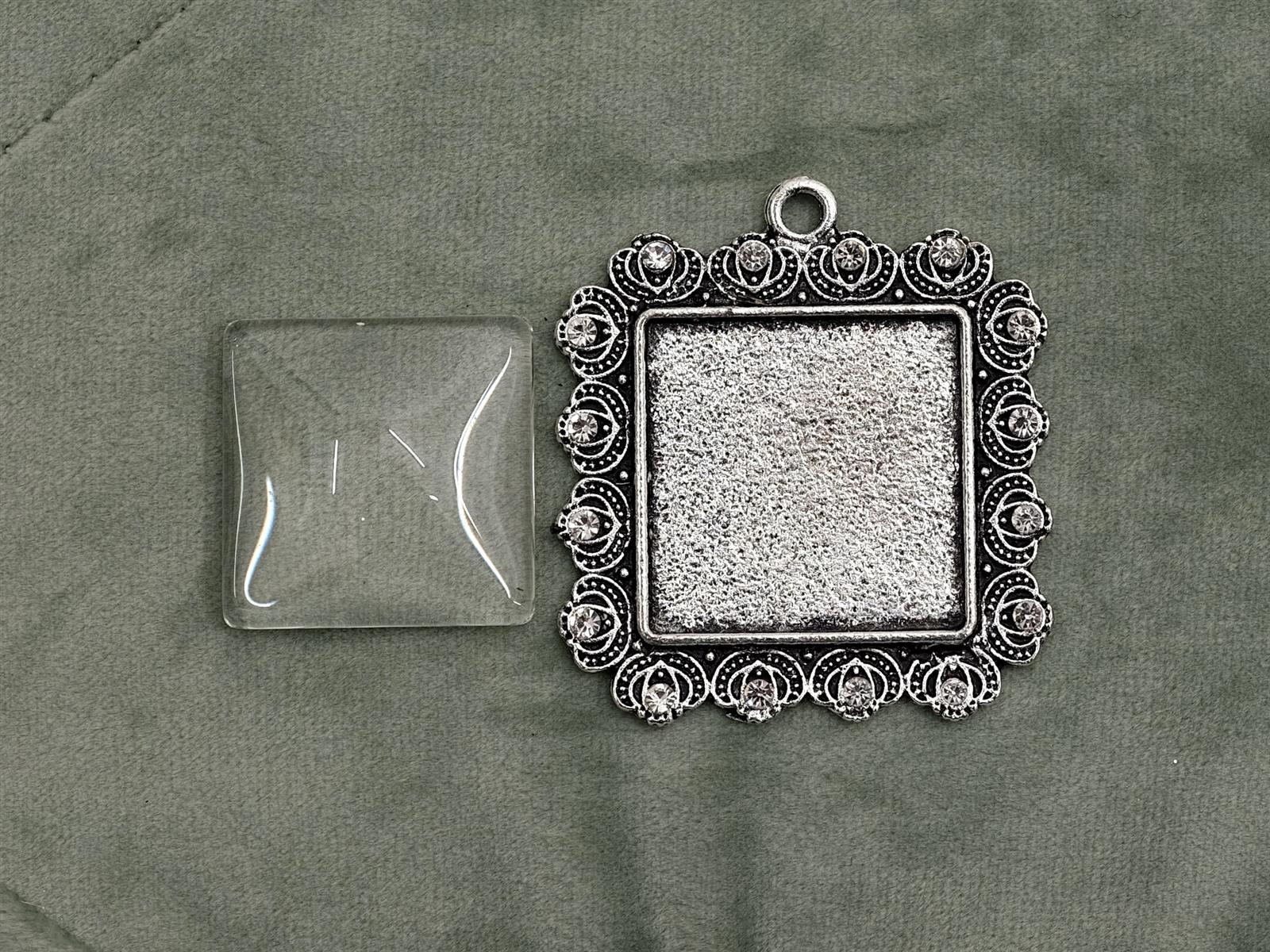 Produktinformationen "Glascabochon quadr., silber, Strass-Rahmen gezackt"
