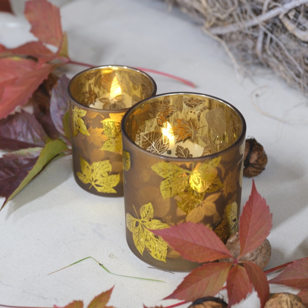 Windlicht "Xander" Farbe: Braun/Gold Motiv: Ahornblätter Höhe: ca. 8 und... mehr