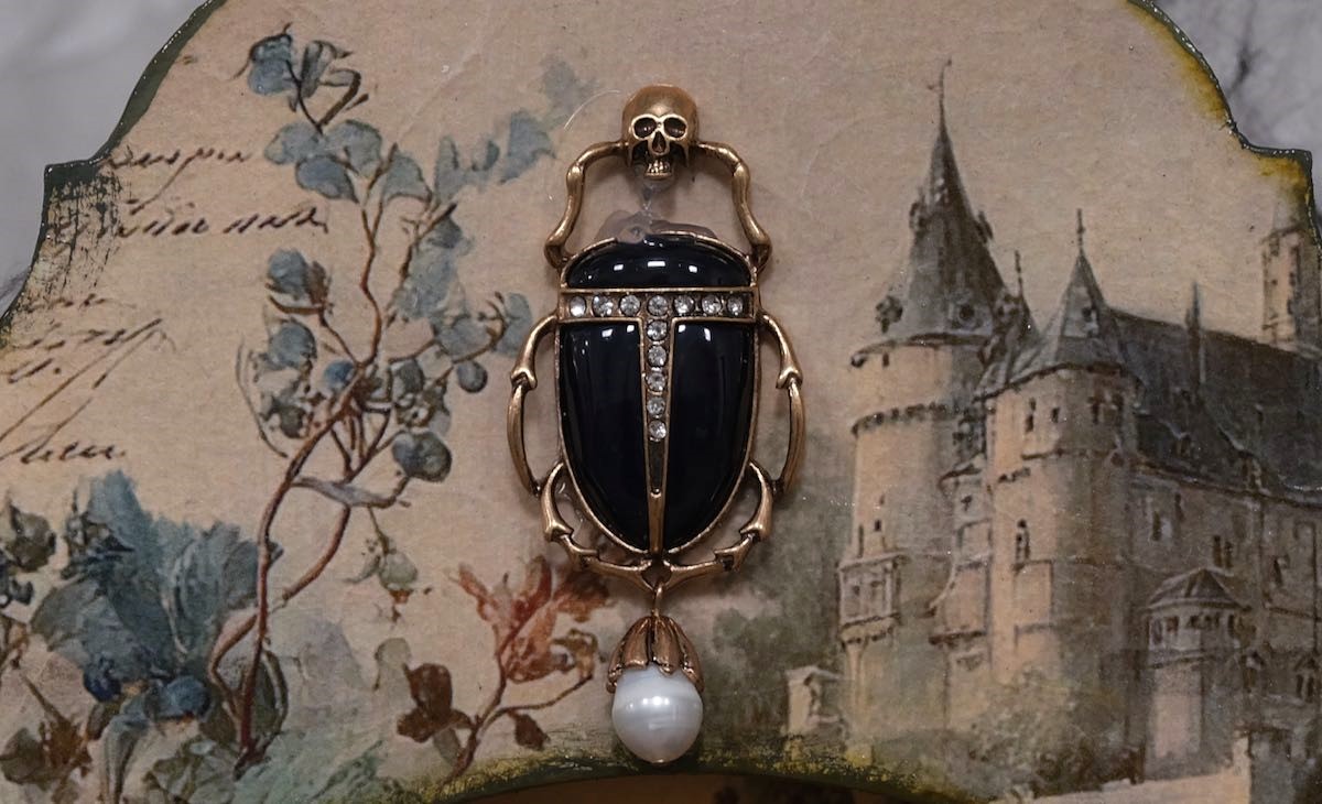 Besonderheit: Mystischer Käfer-Anhänger mit Schädel und Perlenanhänger