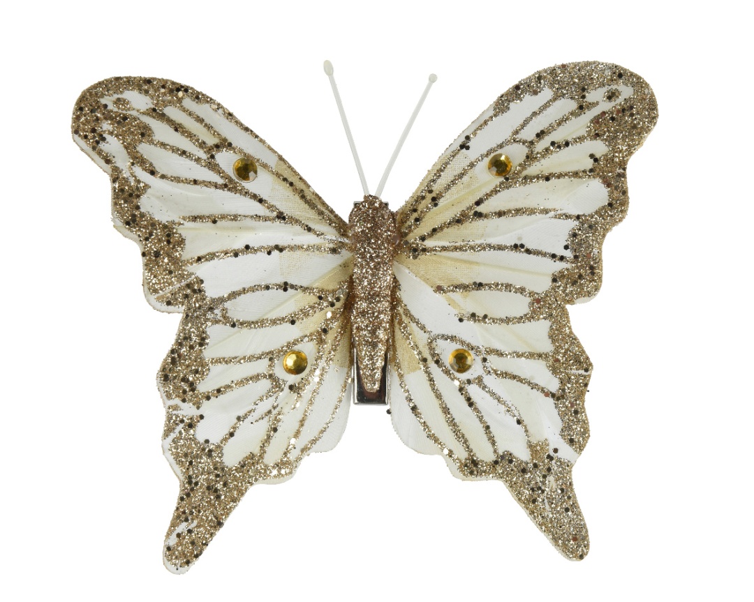Produktinformationen "Schmetterlings-Deko aus Federn auf Clip – Champagner – 12 cm (3er Set) K729292"