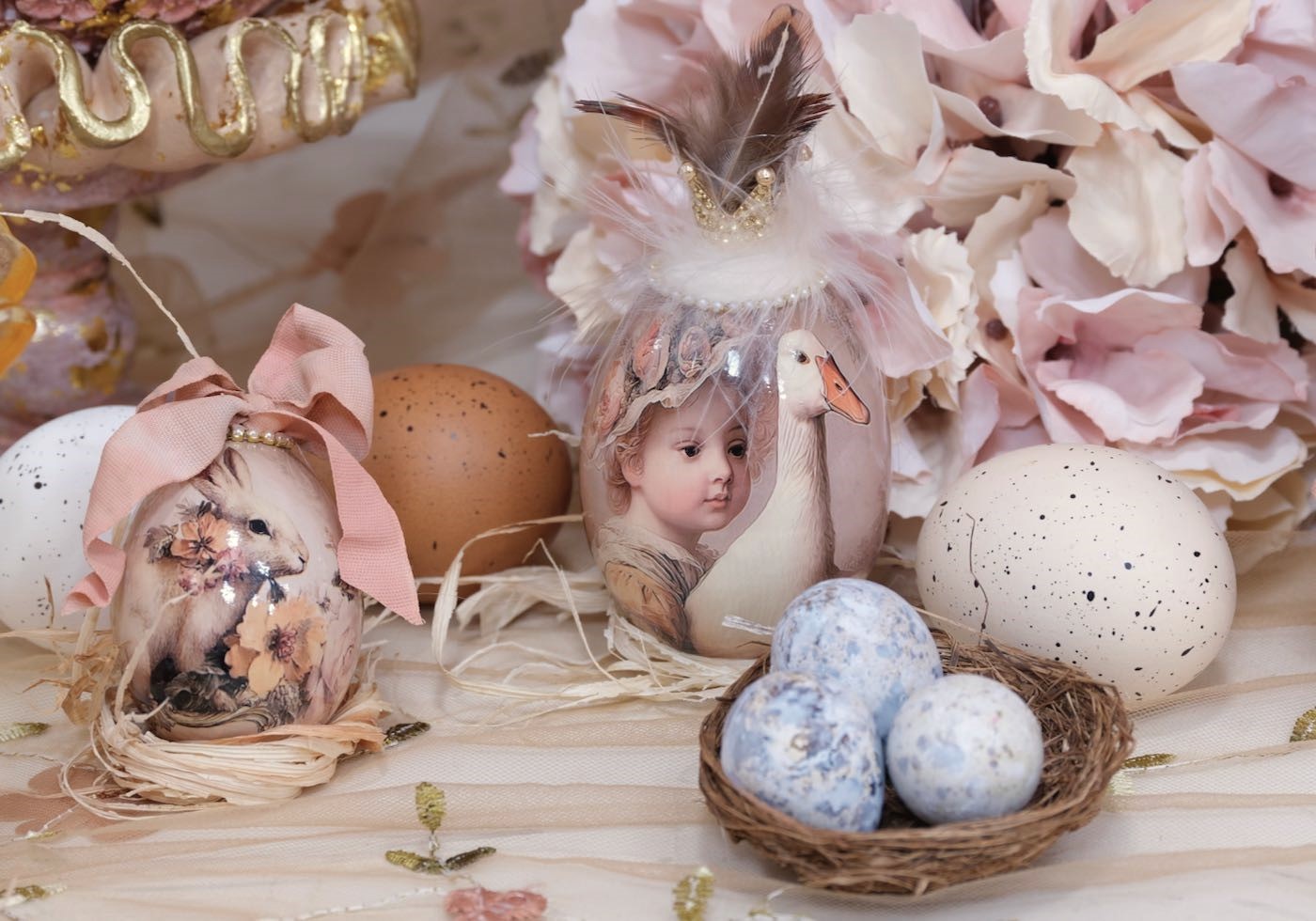 • Kiste mit Dekoeier in verschidene Größen incl Vogelnet und Sisal Deko