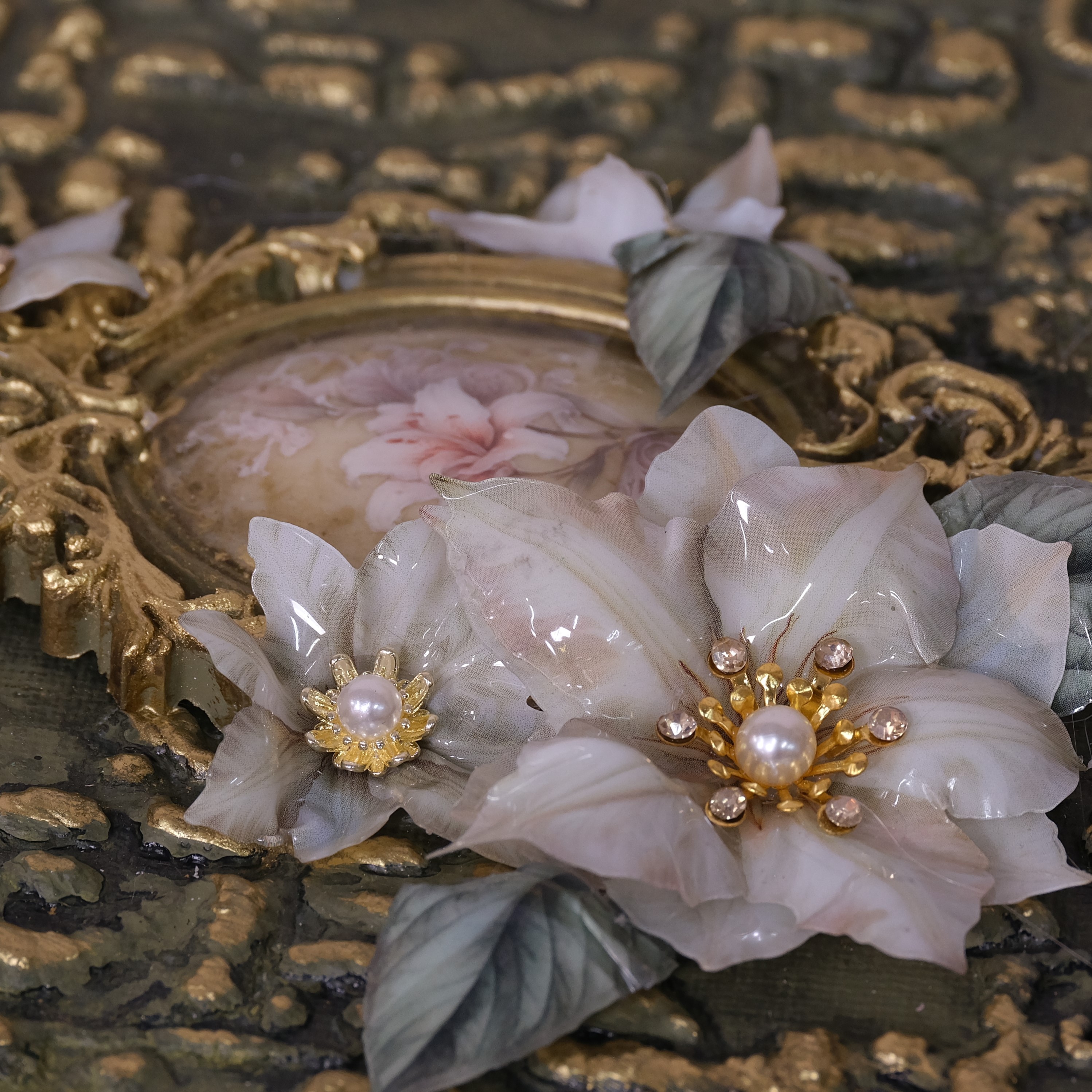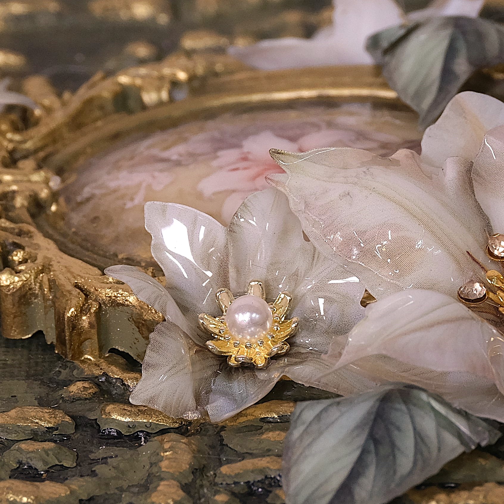 • Dekorative Schmuckelemente mit weißer Perle