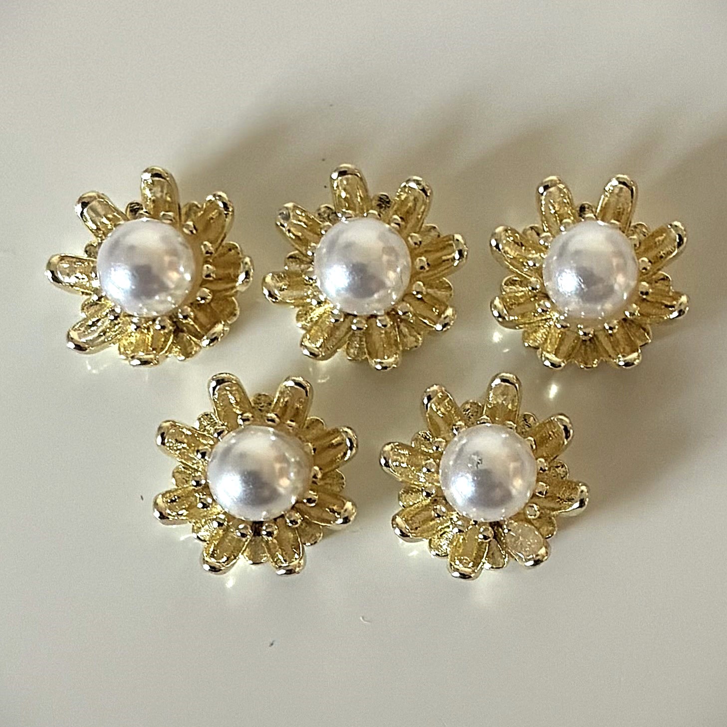 Produktinformationen "Mittelpunkte für 3D Blumen mit Perle - Creme/Gold 5 Stck"