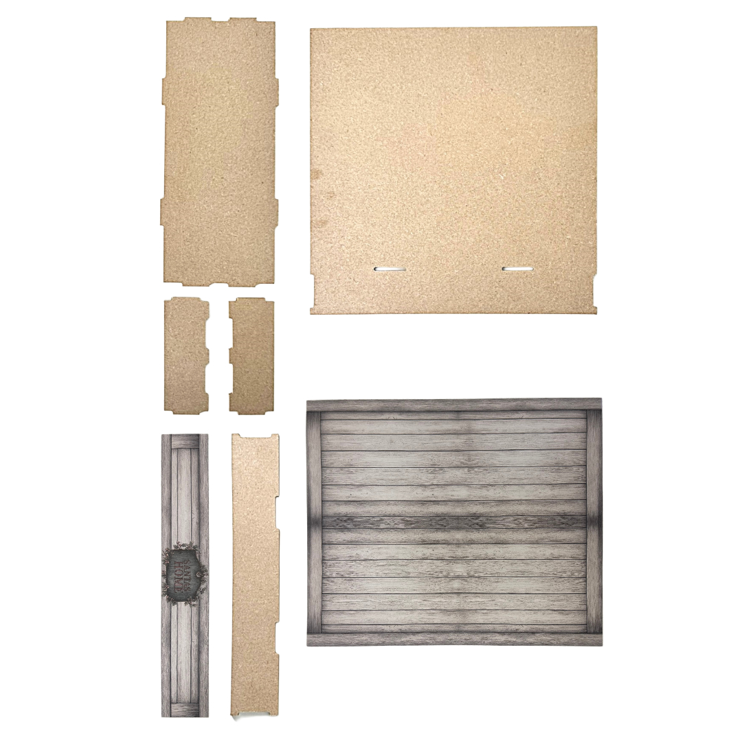 Maße | Rückwand 30x30cm; Bühne 30x12cm; Front 30x5cm; Seitenteile 13x5cm |