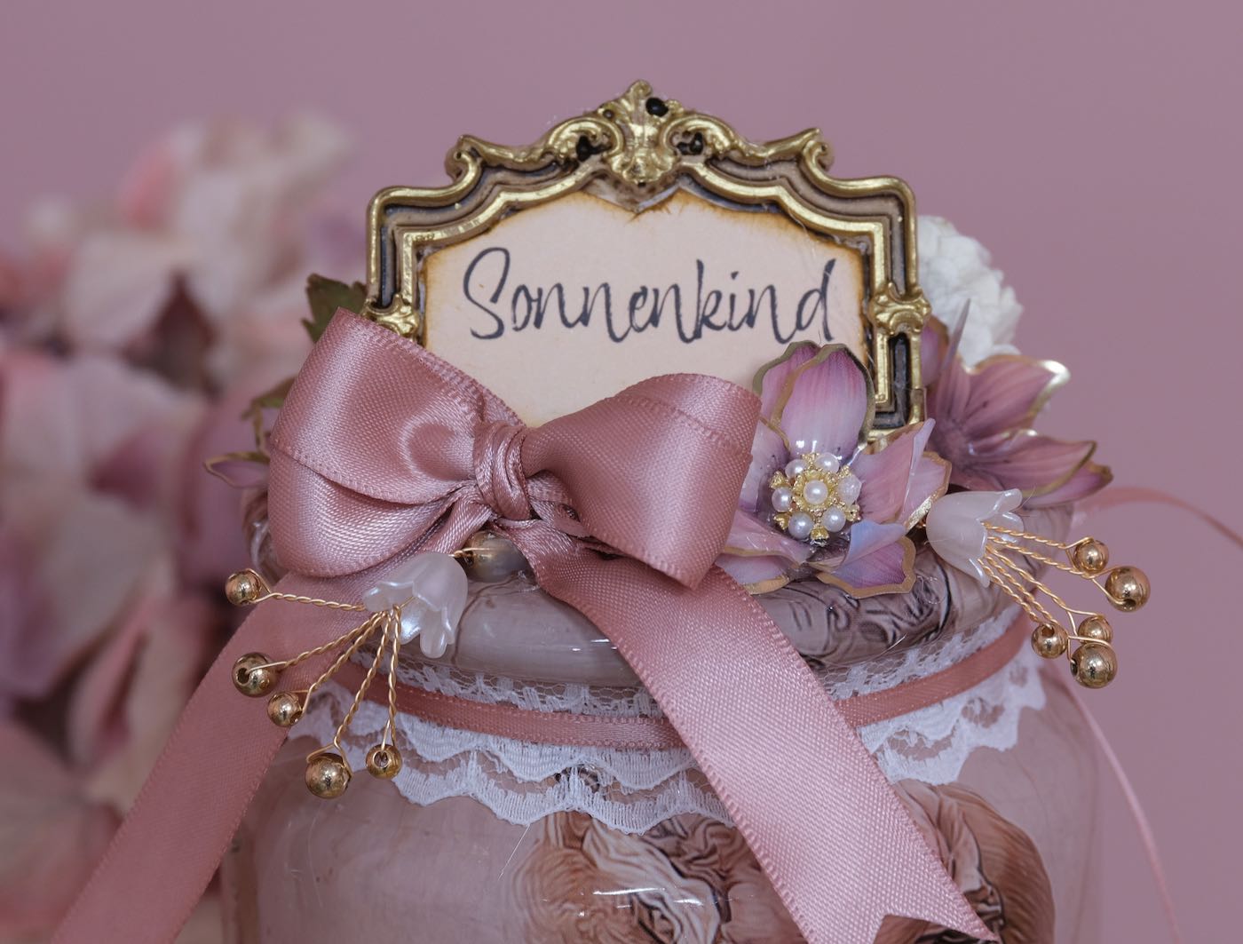 Farbe: Weiß/Klar (Blüten), Gold (Draht), Gold (Perlen)